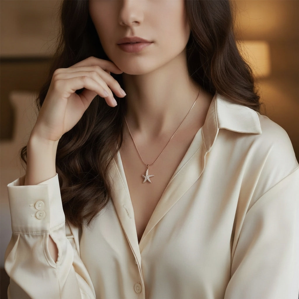 Bring the sparkle of the ocean to your look with our Celestial Starfish necklace
